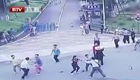 实拍男子楼顶扔砖头砸伤多人被制服