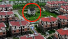 航拍苏州一钉子户被别墅群包围 每天趟河进出