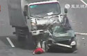 监拍男子车祸后留在车道修车 又被撞飞身亡
