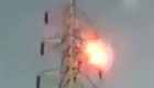 实拍男子爬高压电塔救人反触电 两人同时身亡