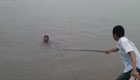 男子发现鸭子被冻湖面 跳湖破冰救援