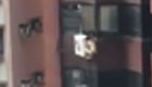 实拍一男子被捉奸 裸身挂在高楼空调外机