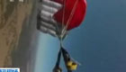 高空跳伞遭遇惊魂一刻 降落伞线缠在一起