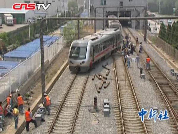 大连一列轻轨发生脱轨事故 车头车身完全分离