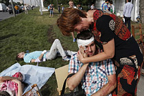 【解说】截至15日晚10时30分,事件共造成2人死亡,32人受伤。据了解,所有伤者已被送到医院进行救治。多位伤者向记者表示,公交车爆炸起火时感觉整辆车都跳了起来。