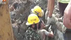 实拍:十米土墙坍塌活埋工人 消防员刨泥救援