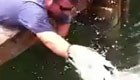 实拍奇葩男子徒手钓大鱼