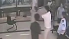 监拍:男子称存款60亿美金没查到 甩凳怒砸银行