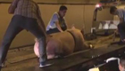 怀孕母猪隧道乱窜 五名大汉围捕有点费力