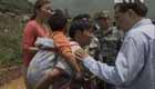 震区堰塞湖昼夜不息排险 漂浮物多阻碍作业