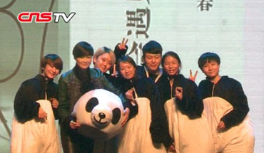 呆萌大熊猫滑雪取乐