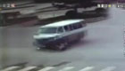 监拍:摩托车闯红灯被撞 遭面包车推行数十米