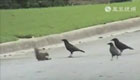 实拍小松鼠为保护同伴尸体独战三只黑乌鸦