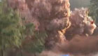 实拍云南震区长海水库泄洪槽爆破