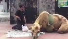 实拍乞丐当街虐骆驼