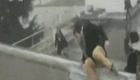"天外"飞轮滚来 砸翻路边乘客