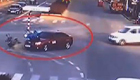 女子闯红灯被撞飞 幸运"降落"引擎盖