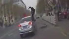 实拍:骑车女遭汽车撞飞 空中翻转数圈