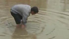 男子发现鸭子被冻湖面 跳湖破冰救援
