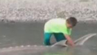 男子发现鸭子被冻湖面 跳湖破冰救援