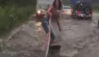 男子发现鸭子被冻湖面 跳湖破冰救援