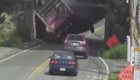 超高车撞桥面瞬间粉碎