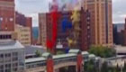 楼房爆破瞬间冒出彩烟