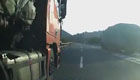 实拍轿车高速路变道与货车相撞