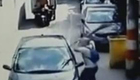 监拍车辆爆胎 乘客被甩车外