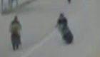 男子雨中暴打环卫阿姨