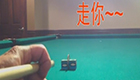 牛人台球桌上打硬币