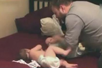 奶爸给双胞胎穿衣手忙脚乱