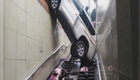 女司机倒车掉进地下通道