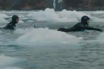 男子发现鸭子被冻湖面 跳湖破冰救援