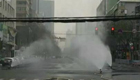 消防栓被撞坏 维修工打赤膊淋水抢修