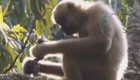 珍贵视频记录西黑冠长臂猿捕食松鼠