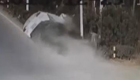 监拍轿车撞路边空翻一周