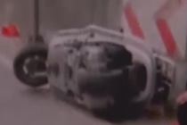 实拍:大货车车厢压垮车头 驾驶员惊险逃离