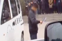实拍:“双刀男”街头连砍两车 特警果断制服