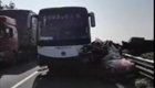 轿车遭大客车撞瞬间解体
