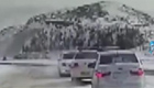 汽车冰雪路上漂移转弯 撞飞对向车零件散落一地