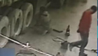 监拍:货车侧翻 修理工被砸前幸运脱险