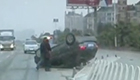 实拍高速轿车失控撞护栏 司机从车中飞出