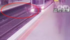 男子欲穿铁轨与火车擦肩而过