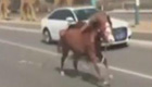 脱缰马儿逆行狂奔撞汽车