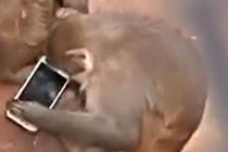 游客手机掉进猴山 “大圣”把玩爱不释手