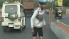 山体滑坡滚石飞落猛砸客车 场面惊心动魄