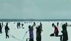 俄结冰湖面突然裂开 数百冰钓者狂奔逃命
