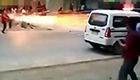 汽车漂移险撞人 小伙超强跳跃化险为夷