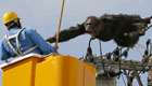 逃跑黑猩猩被困电线杆